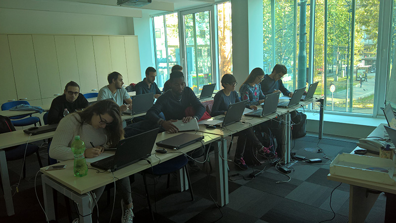 Sono stati selezionati 11 ragazzi che sono giunti da tutta Italia, con un background formativo tecnico-scientifico (Informatica, Ing. Biomedica, Matematica) in grado di poter apprendere le basi dei linguaggi di programmazione JAVA e .NET. Il corso è stato tenuto da Francesca Greco (Formatore e Consulente IT), Stefano Rossoni (Formatore e Consulente IT)e Stefano Colnaghi (IT Trainer MCT Microsoft).